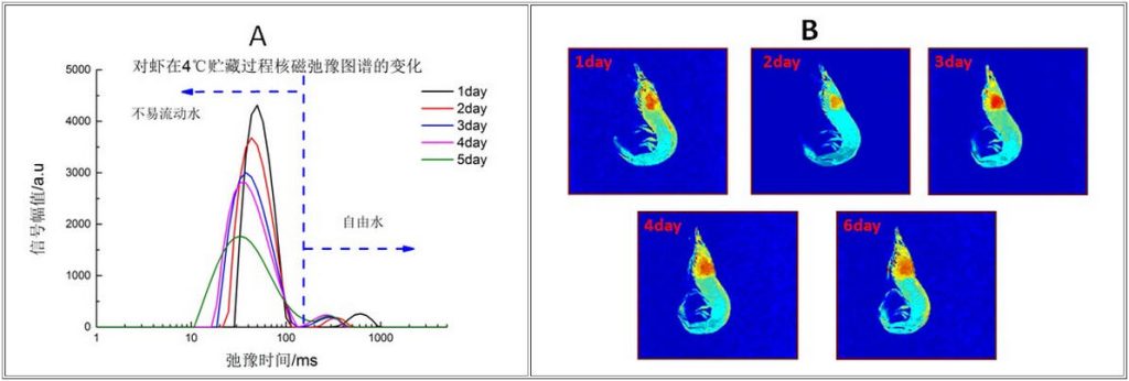 案例一:对虾在4℃贮藏过程核磁共振弛豫图谱的变化